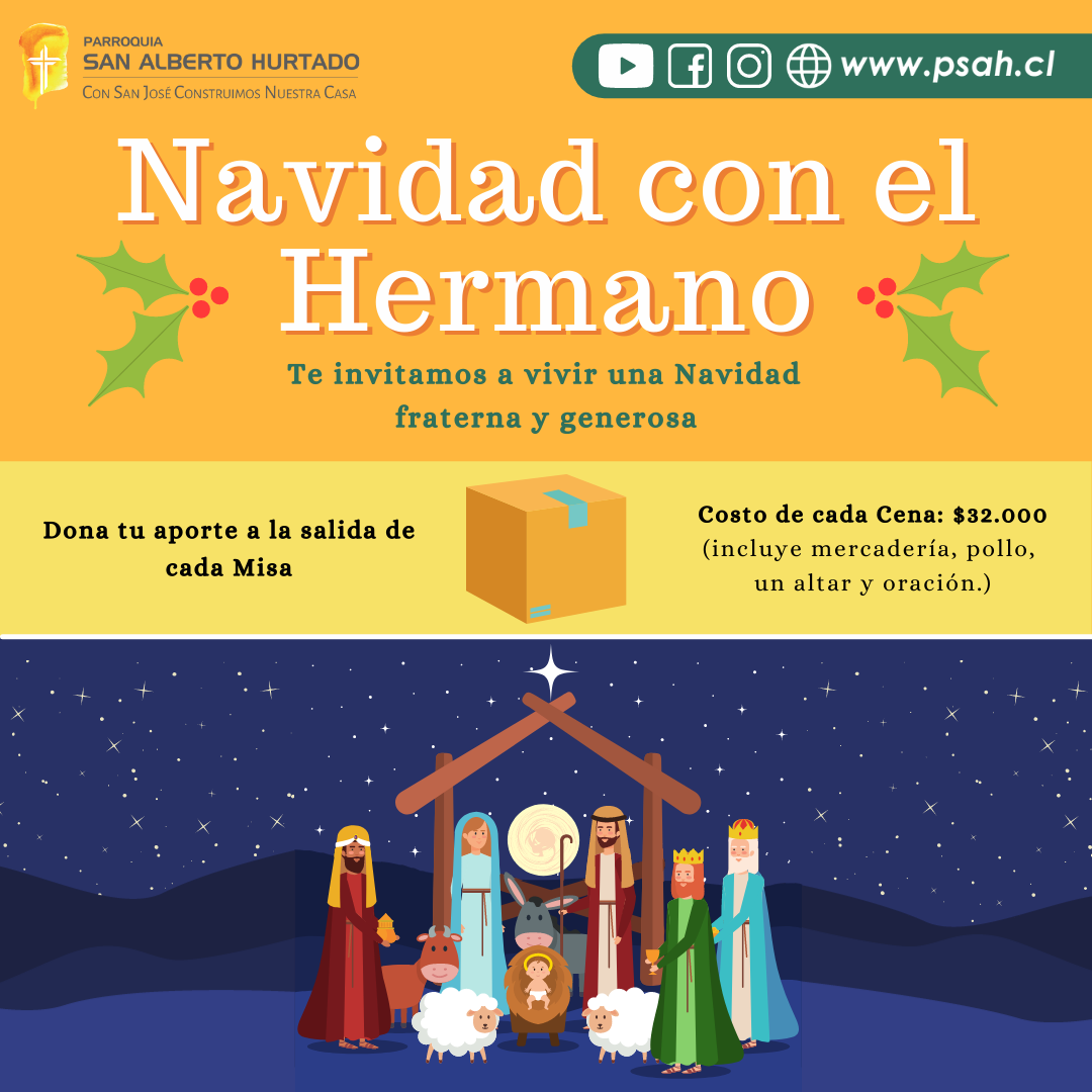 El nacimiento de Jesús nos invita a entregarnos por completo a los demás. Es una fecha de alegría y de fraternidad y queremos invitar a toda nuestra comunidad a apoyar a las familias más humildes de Cerro Navia, Puente Alto y Las Cabras, donando una cena de Navidad.