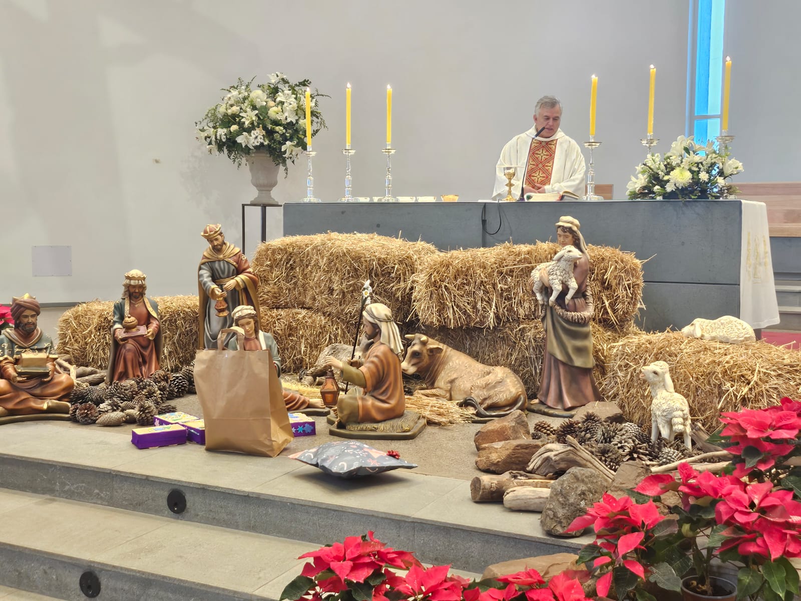 Posteriormente, durante la celebración de la Misa, los niños se acercaron al pesebre de nuestro templo para entregar estos dibujos y algunos obsequios. Imitando así a los Reyes Magos, expresaron su amor a Jesús, nuestro Salvador y Señor.