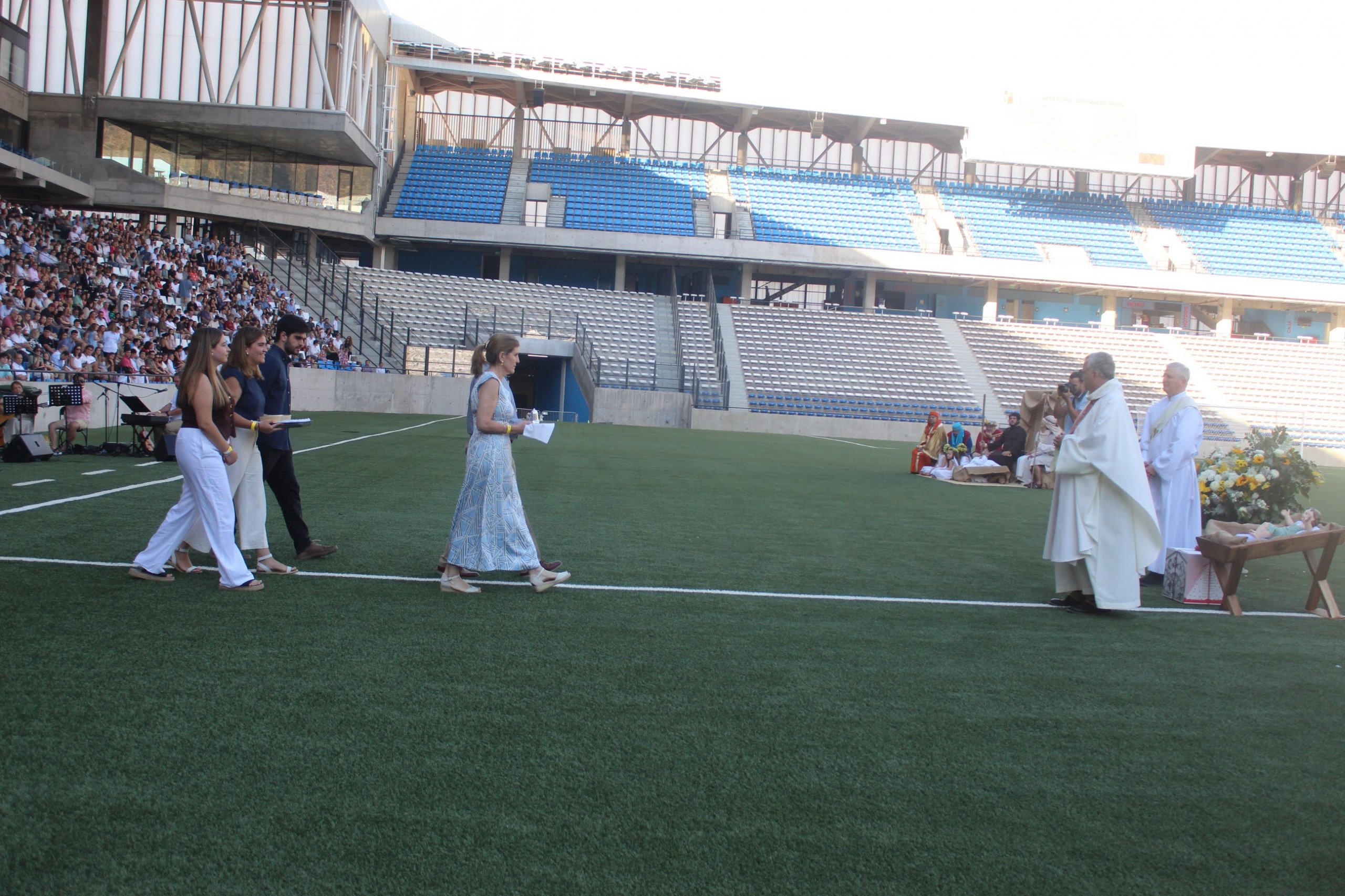 Congregados de modo especial en el Claro Arena, más de 3.000 personas nos reunimos para vivir con gozo la celebración de la Misa de Navidad el miércoles 24 de diciembre. Fue una jornada que tocó el corazón de muchos de los presentes, quienes, en familia, oraron y alabaron a Dios, que se encarnó y nació de Santa María, y hoy quiere seguir naciendo en nuestros corazones.